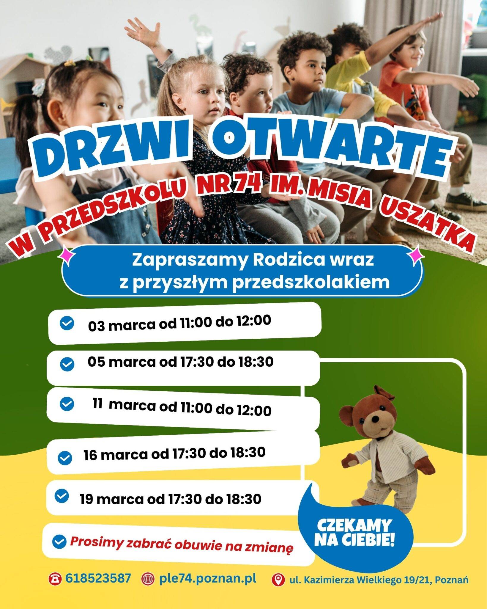 Prosimy o zabranie obuwia na zmianę dla dziecka i Rodzica.