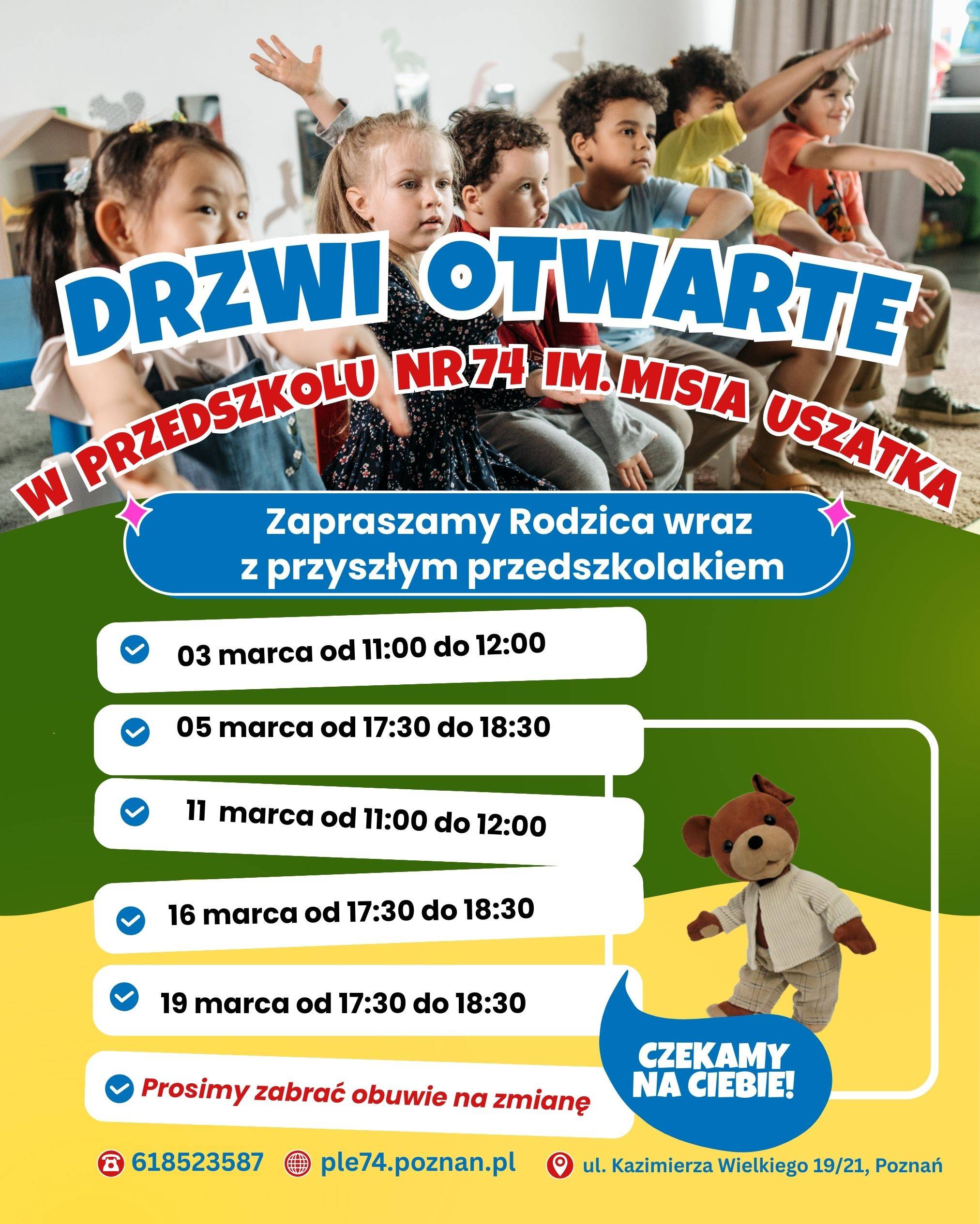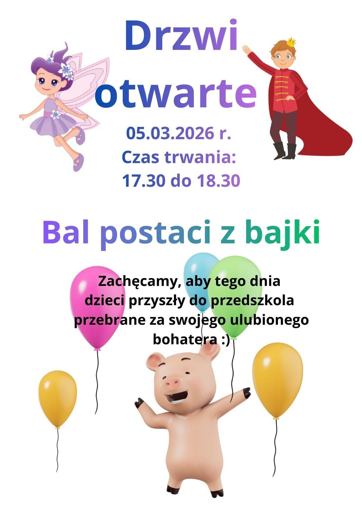 05 marca podczas Drzwi Otwartych zapraszamy wszystkie przyszłe przedszkolaki na Bal .... Miś Uszatek czeka na Was